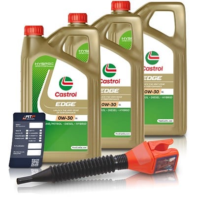 | Lieferumfang | 3 x 5L Castrol EDGE 0W-30 LL, 1 x Ölwechsel-Anhänger, 1 x Einfülltrichter |